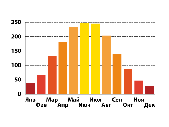 Например, для наших широт среднесуточная величина солнечной радиации между зимой и летом отличается примерно в 5-6 раз.