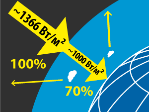 На поверхность Земли поступает около 70% энергии, остальная отражается и рассеивается в атмосфере.